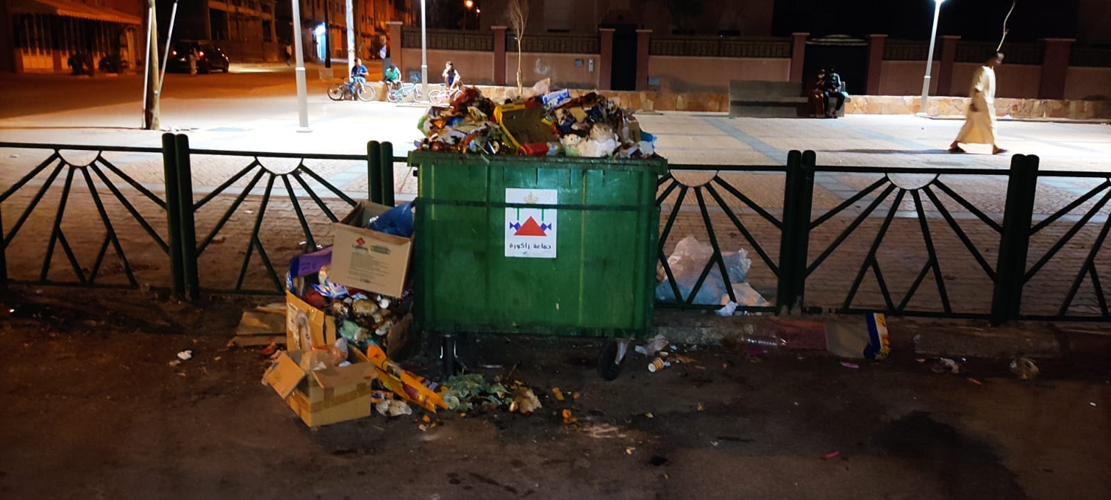 وتوصلت جريدة ” الجهة الثامنة”، بصور توثق إنتشار النفايات في الطرقات، حيث يعمد بعض أصحاب المحلات، والمطاعم بالمدينة السالفة الذكر، إلى رمي مخلفاتهم وسط الشارع، وتحت الأشجار التي تزين جنبات الطرق، مخلفة روائح كريهة تسبب الضرر للمارة، والساكنة القريبة من هذه الأماكن، والتي تتحول مع مرور الوقت إلى مطارح للأزبال، تشكل فضاءا للتخلص من أكياس النفايات في نفس هذه الأماكن.