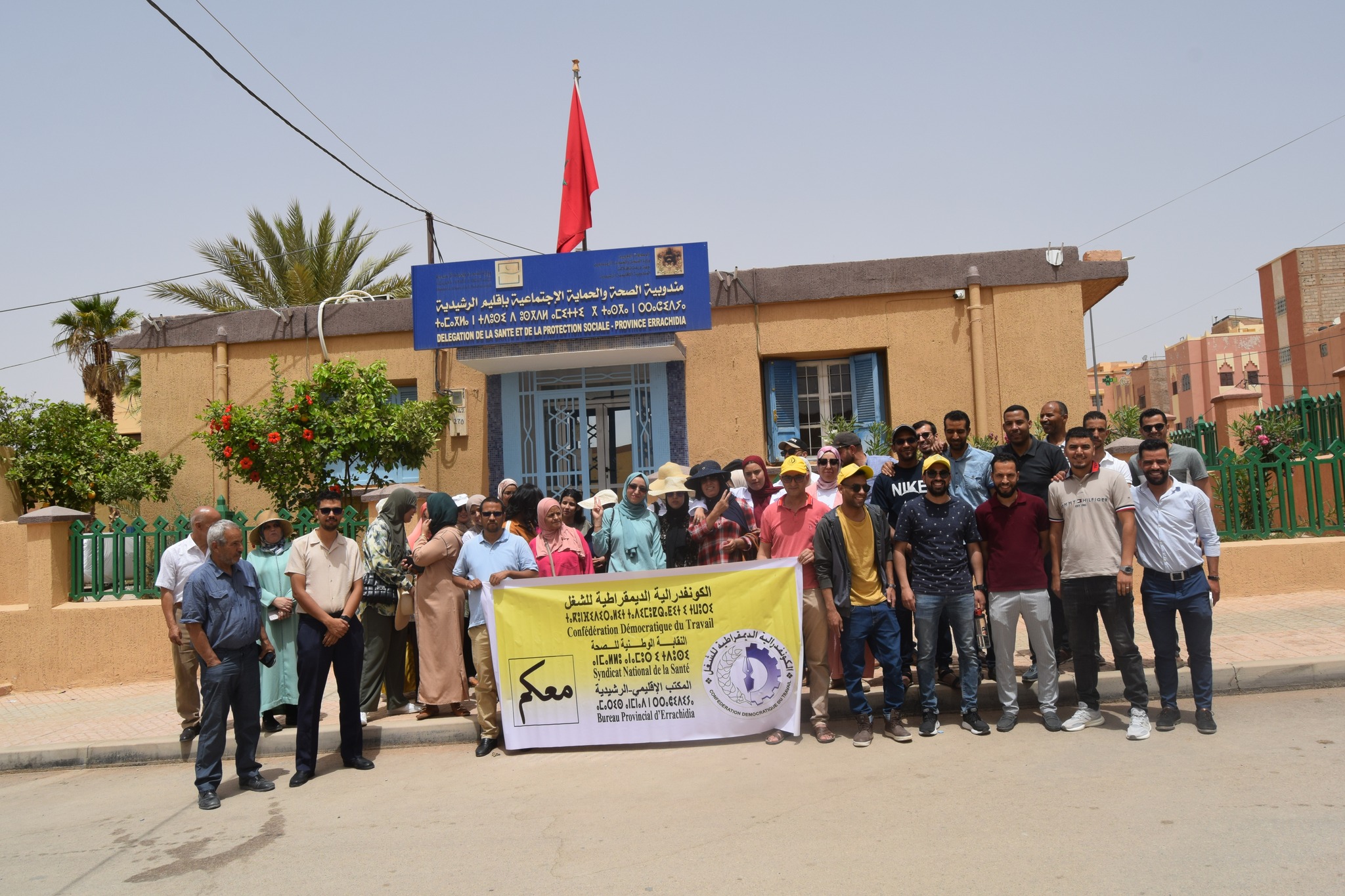 نظم المكتب الإقليمي للنقابة الوطنية للصحة، المنضوية تحت لواء الكونفدرالية الديمقراطية للشغل بالرشيدية، صباح أمس الثلاثاء، وقفة إحتجاجية أمام مقر المندوبية الإقليمية لوزارة الصحة والحماية الاجتماعية بالرشيدية.