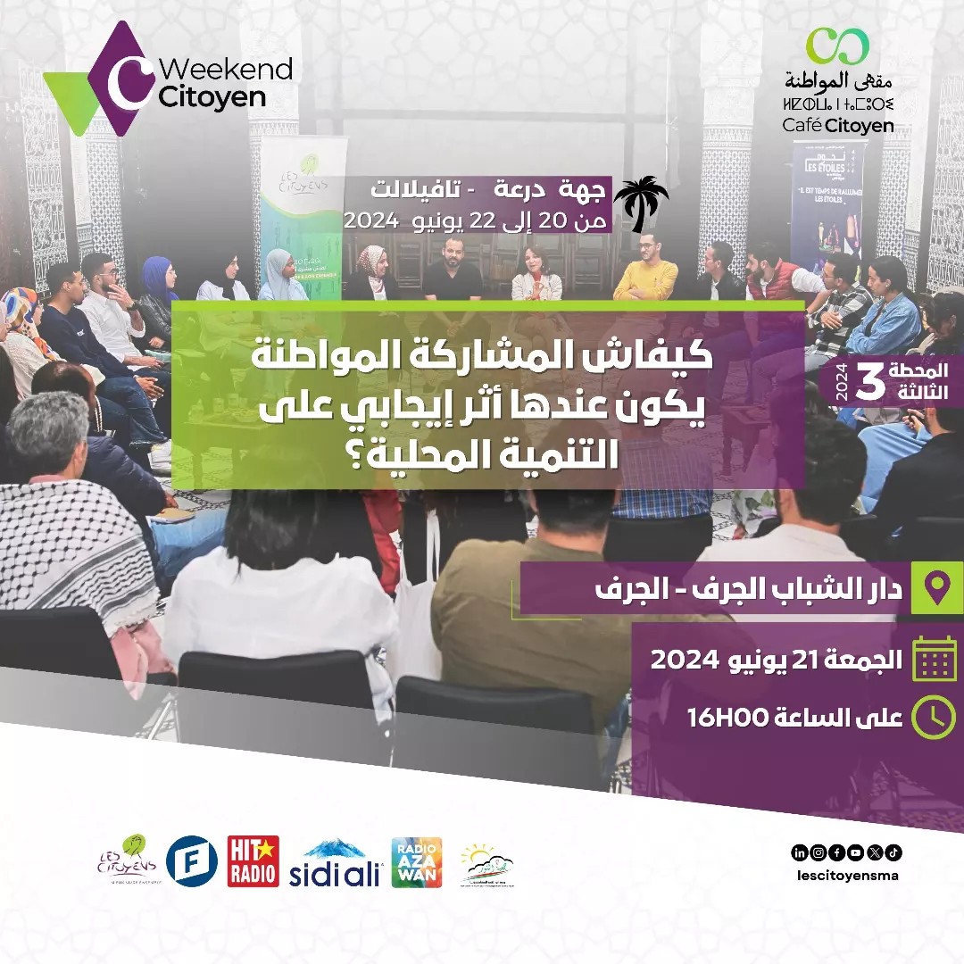والجدير بالذكر على أن “الويكاند المواطن” هو برنامج يتوحى تعزيز المشاركة الشبابية وجعلها في محور الديناميات الوطنية للمجتمع المغربي، ضمن سياق عام يؤكد على ضرورة/ وملحاحية الإنخراط الشبابي في بلورة أسس بناء المستقبل.