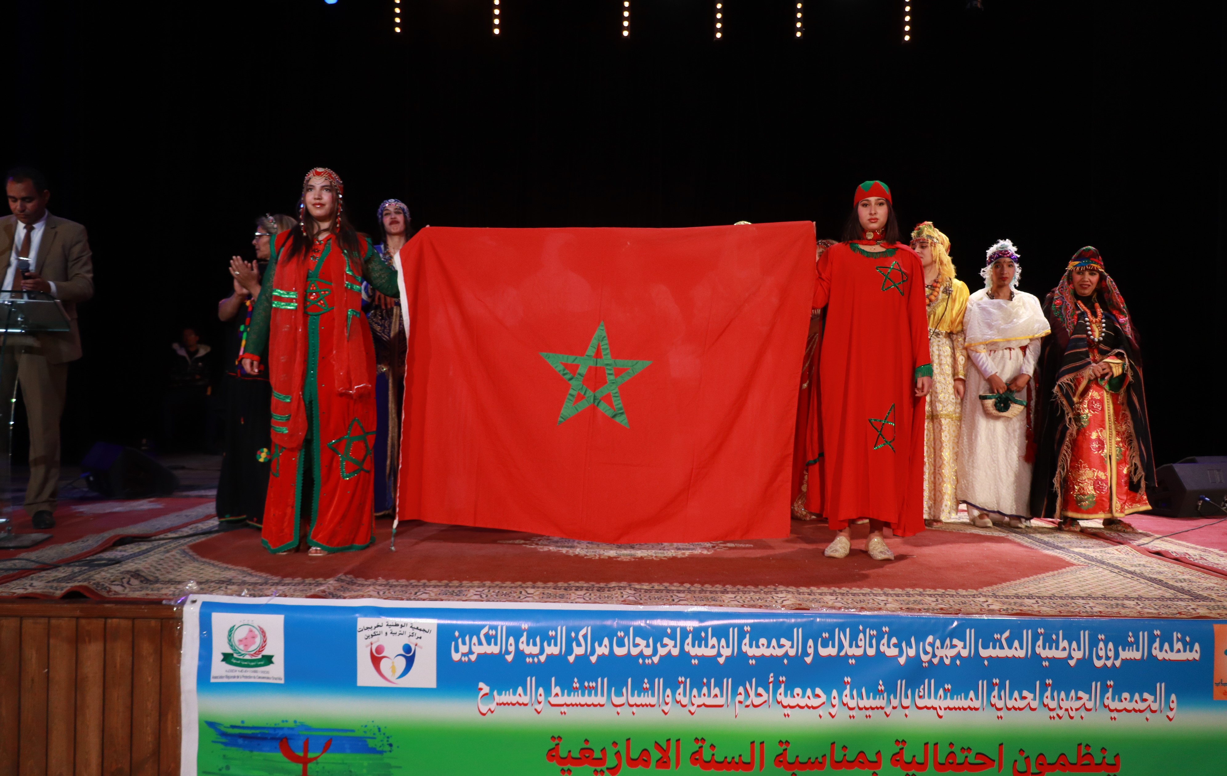 نظم أمس الأحد، المكتب الجهوي لمنظمة الشروق الوطنية درعة تافيلالت بتنسيق مع الجمعية الوطنية لخريجات مراكز التربية والتكوين، والجمعية الجهوية لحماية المستهلك بالرشيدية، وجمعية أحلام الطفولة والمسرح، يوما احتفاليا بمناسبة السنة الأمازيغية 2975، بالمركز الثقافي تاركة بالرشيدية.