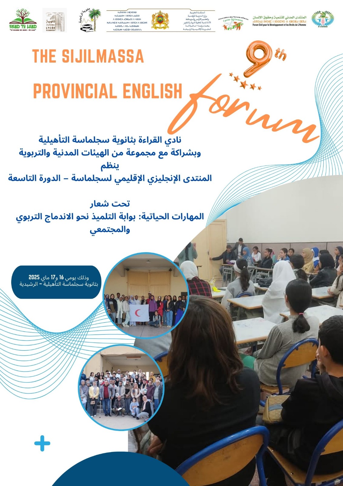 تستعد ثانوية سجلماسة التأهيلية بمدينة الرشيدية لاحتضان فعاليات النسخة التاسعة من المنتدى الإقليمي الإنجليزي لسجلماسة، وذلك يومي 16 و17 ماي 2025، بتنظيم من نادي القراءة بالمؤسسة.