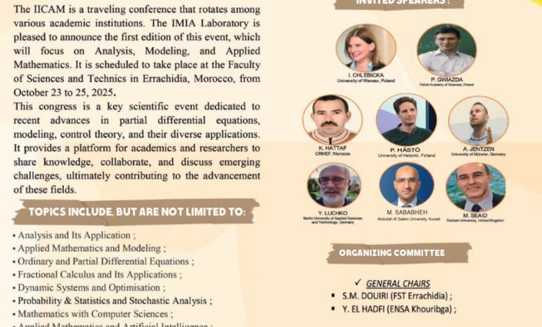 في خطوة علمية نوعية تروم تعزيز البحث العلمي والانفتاح الأكاديمي على المستجدات العالمية، تحتضن كلية العلوم والتقنيات بالرشيدية، التابعة لجامعة مولاي إسماعيل، الدورة الأولى من المؤتمر الدولي المتنقل في الرياضيات المتقدمة (2025 IICAM)، وذلك خلال الفترة الممتدة من 23 إلى 25 أكتوبر 2025، تحت شعار: “التحليل، النمذجة والرياضيات التطبيقية”.