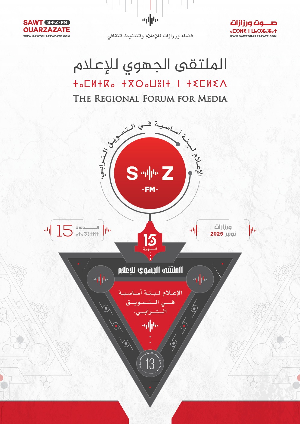 تستعد مدينة ورزازات لاحتضان فعاليات الملتقى الجهوي الخامس عشر للإعلام خلال الفترة الممتدة من 28 إلى 30 نونبر 2025، تحت شعار: “الإعلام المحلي لبنة أساسية في التسويق والترويج الترابي”.