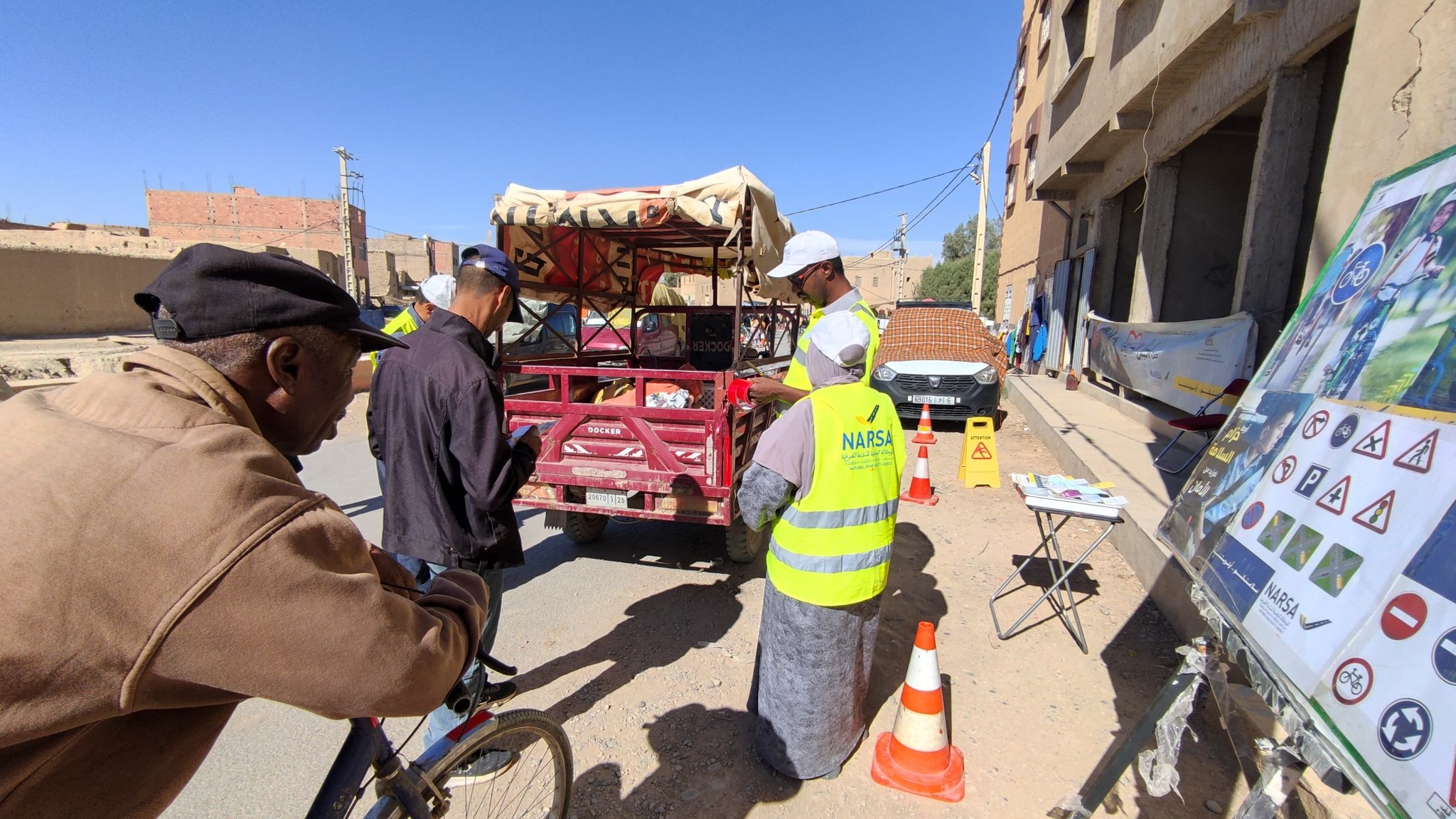 شهد السوق الأسبوعي بقصبة بن علي، صباح الأحد الماضي، تنظيم عملية ميدانية واسعة للتحسيس بالسلامة الطرقية، في إطار البرنامج الوطني للتربية والسلامة الطرقية، وبمبادرة من جمعية فضاء جيل المواطنة للطفولة والشباب والتنمية المستدامة بأرفود، وبشراكة مع الوكالة الجهوية للسلامة الطرقية بجهة درعة تافيلالت. واستهدفت الحملة مستعملي الطريق داخل هذا الفضاء القروي الذي يعرف كثافة في استعمال الدراجات الهوائية والنارية والعربات البسيطة.