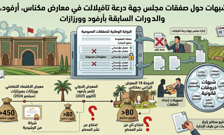 مجلس الجهة .. صفقة تنظيم رواق في معرض التمور بأرفود : لم تُلغى ولم يُنشر محضر فتحها..فهل يتحرك والي الجهة قبل أن يرتكب اهرو أبرو حماقة قانونية؟