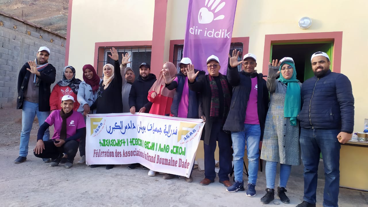 تحت شعار ” دير اديك، دير الخير تلقاه ” تمكن حوالي 20 متطوع و متطوعة، أعضاء مؤسسة diridik و أعضاء مكتب فدرالية جمعيات بومالن دادس الكبرى، من تجهيز و تركيب الوسائط المعلوماتية بالوحدات السابقة الذكر، أشغال تخللتها فقرات تنشيطية ترفيهية، و عروض تربوية استفاد منها أطفال و تلاميذ قبائل أيت حديدو المتواجدة بين فجاج السفح الجنوبي للأطلس الكبير الوسط، ادخلت على قلوبهم و محياه البهجة و السرور و الاحساس بالحقوق الطبيعة كاللعب و الترفيه.