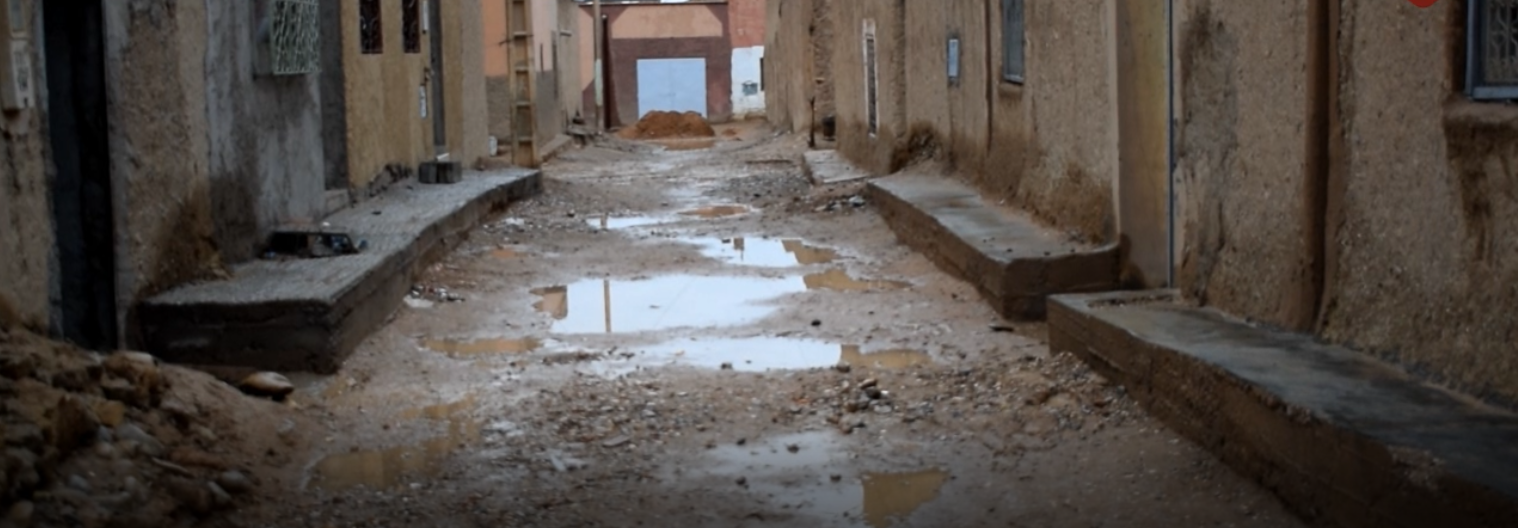 “الجهة8” زارت الحي، وعاينت استحالة المرور في الازقة دون ارتداء “البوط” أو حذاء يُجابه “الغيس” الذي تكون جراء التساقطات المطرية، إلى جانب تصدع العديد من البيوت حتى اقتربت من التصنيف ب”الآيلة للسقوط”، فضلا عن تزايد صعوبة الوصول الى المدرسة من طرف الأطفال.