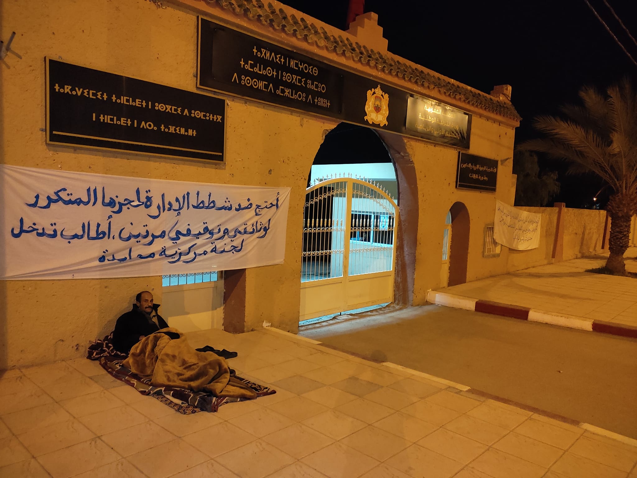 أستاذ يضرب عن الطعام أمام الأكاديمية الجهوية للتربية والتكوين و مدير هذه الأخيرة خارج التغطية